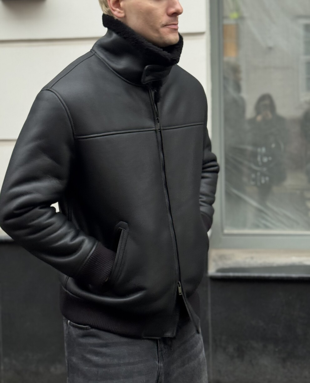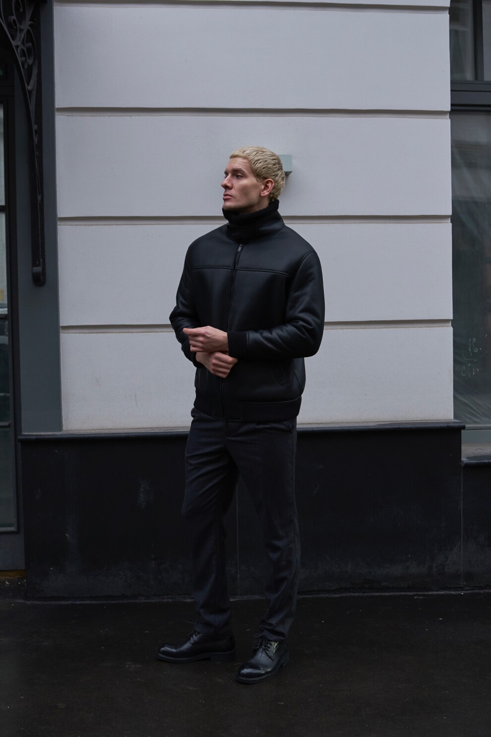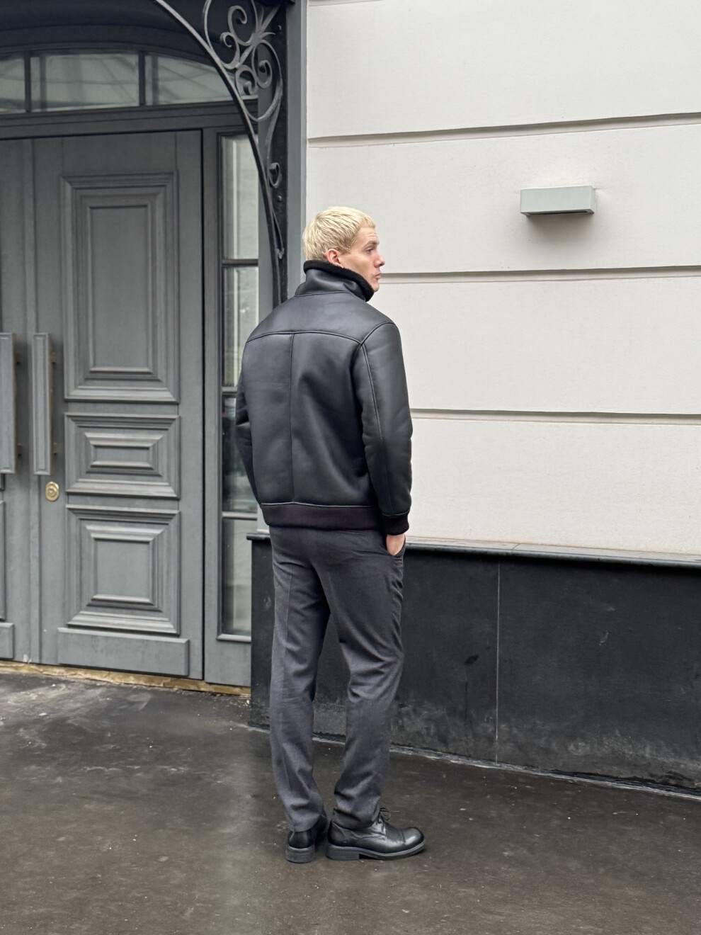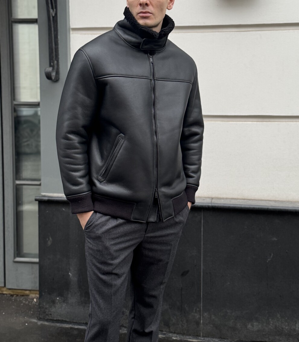 Дублёнка - бомбер на молнии с карманами и воротником стойкой из натуральной итальянской овчины Кёрли, без подклада. Лёгкая и тёплая