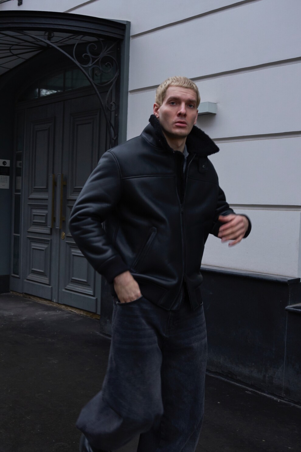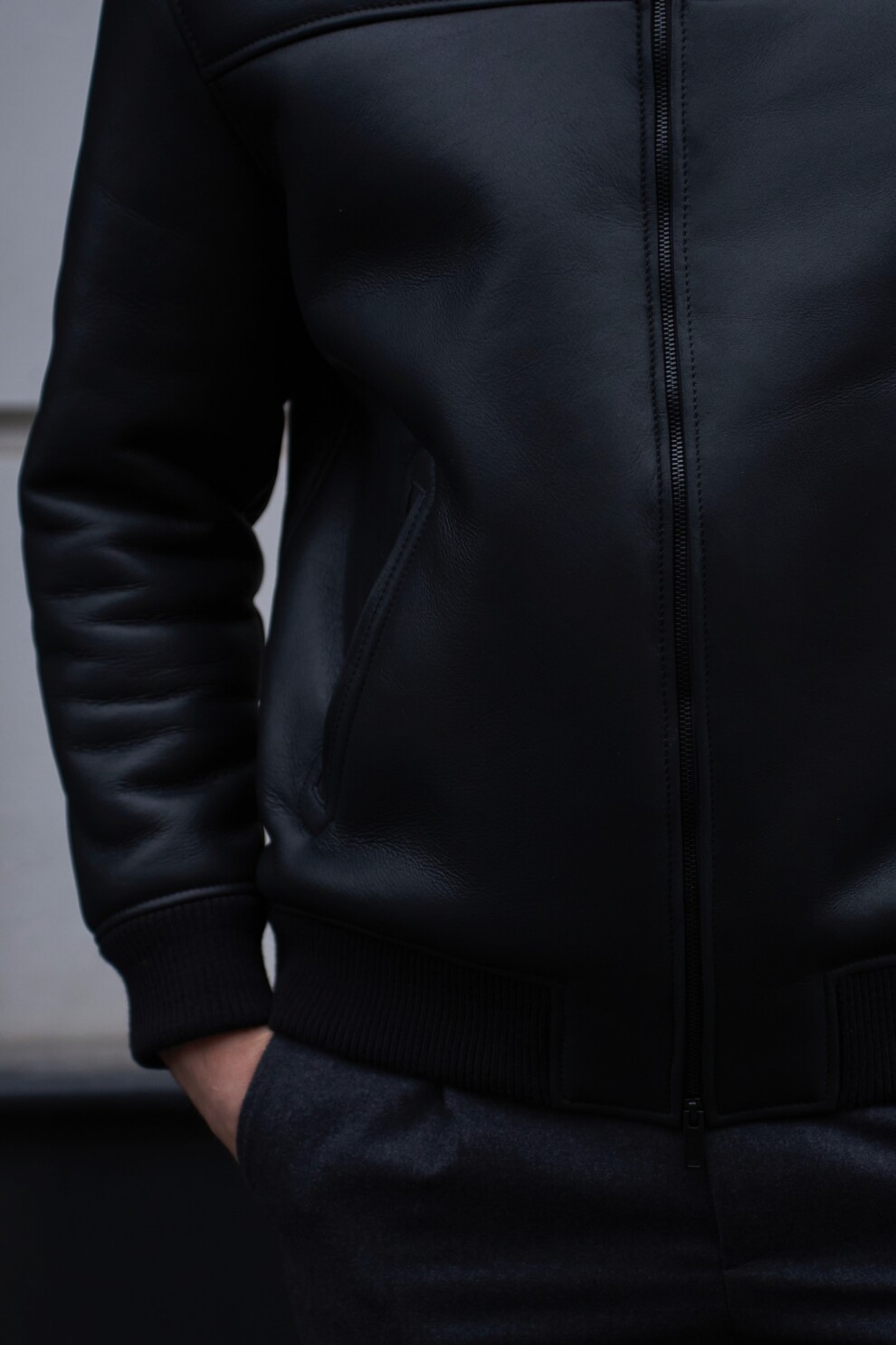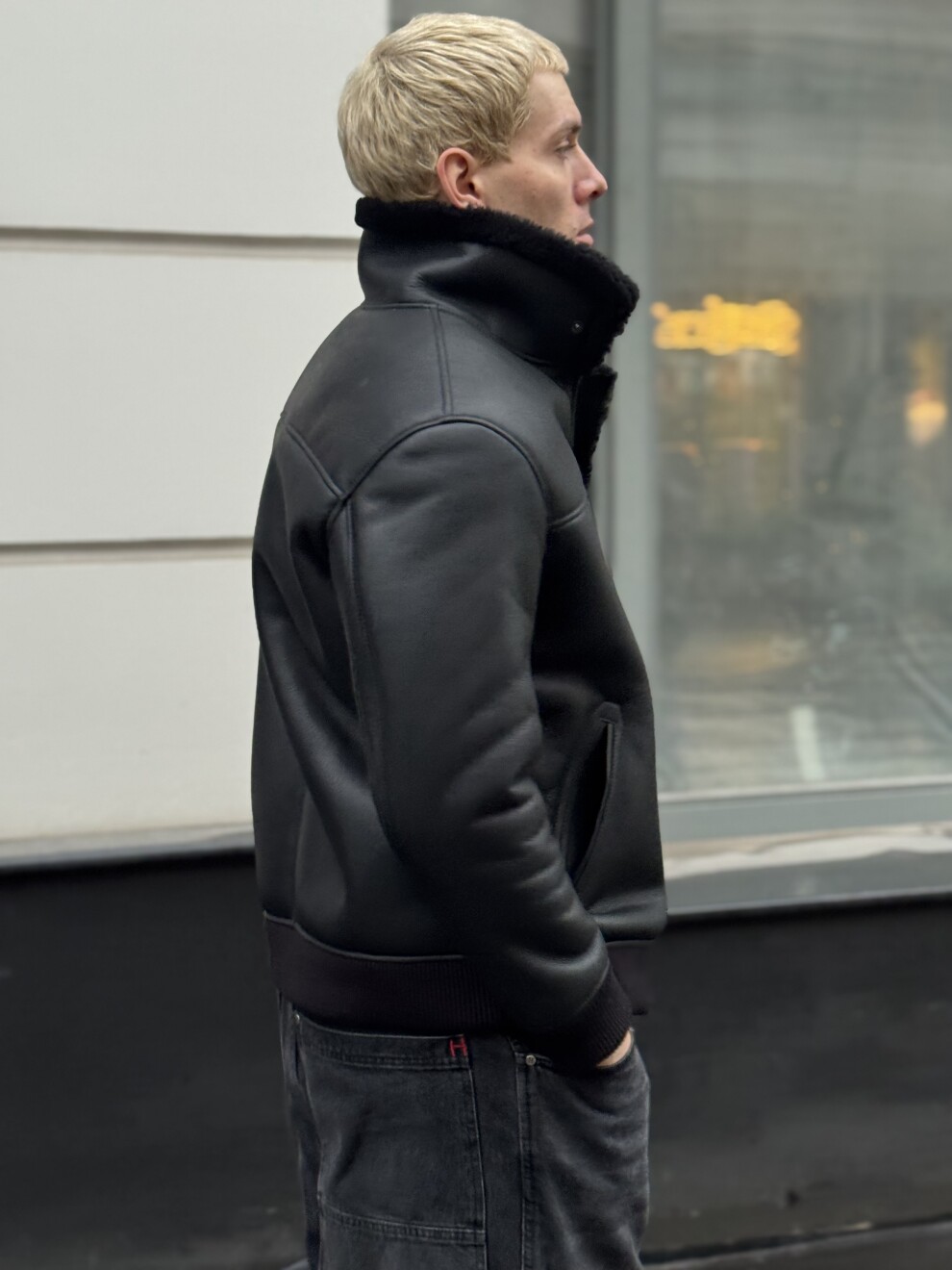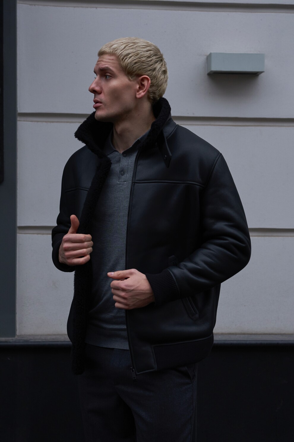 Дублёнка - бомбер на молнии с карманами и воротником стойкой из натуральной итальянской овчины Кёрли, без подклада. Лёгкая и тёплая